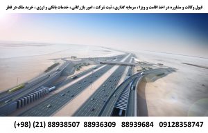 اخذ اقامت قطر ، اخذ ویزای قطر ، قبول وکالت قطر ، مهاجرت قطر ، ثبت شرکت قطر ، گرفتن شریک قطر ، اخذ نمایندگی بین المللی قطر ، سرمایه گذاری قطر ، خرید و اجاره ملک قطر ، ویزای تحصیلی قطر ، ویزای کاری قطر ، امور بازرگانی قطر ، صادرات و واردات قطر ، خدمات بانکی و ارزی قطر ، نقل و انتقالات مالی ارزی قطر ، خدمات بیمه ای قطر ، رفع دیپورتی قطر ، رفع ریجکتی قطر ( شهرهای دوحه ، ام سعید ، دوخان ، الخور و غیره )